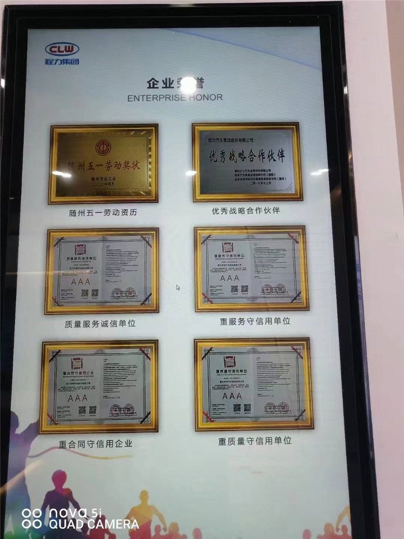 中國民企500強程力汽車集團股份有限公司,位于中國專用汽車之都--湖北省隨州市。在隨州市曾都區(qū)南郊、曾都經(jīng)濟開發(fā)區(qū)、武漢市黃陂區(qū)、襄陽市東津新區(qū)等地均建有大型生產(chǎn)制造基地,擁有三大品牌分別為:程力專汽程力威CLW),程力汽車程力CL),程力重工(程力重工CLH)。六大優(yōu)勢。