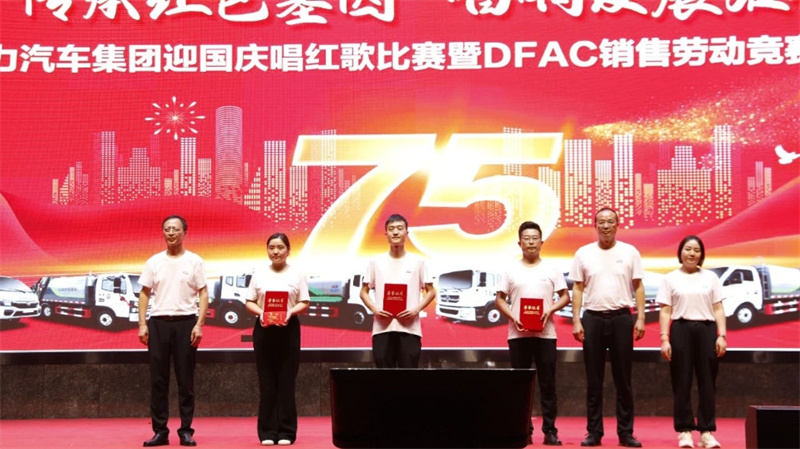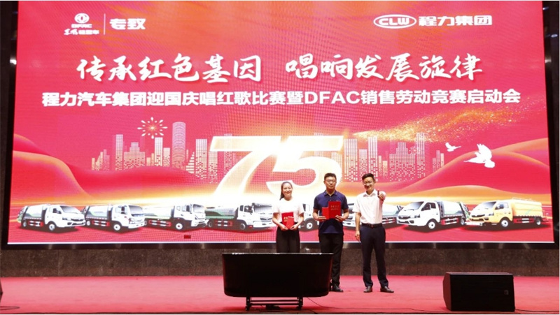 今日中國,欣欣向榮,江山如此多嬌,我們用拼搏的汗水,把捷報頻傳寫在美麗中國的答卷里;今日中國,人民豪邁勇毅前行砥礪前行,我們用實干成就夢想,把溫暖人心的故事,寫在幸福中國的答卷里;今日中國,前程似錦,在實現(xiàn)中華民族偉大復(fù)興中國夢的新征程上,我們昂首闊步,把日新月異的發(fā)展,寫在奮進(jìn)中國的答卷里;征途漫漫,惟有奮斗,讓我們一起唱響中國夢祖國頌的歡歌,共同祝福偉大的祖國蒸蒸日上、和諧美好。 程力汽車集團(tuán)董事長程阿羅在盛會上致詞,向參加唱紅歌比賽的全體參賽隊員和與會代表,致以了親切問候!對東風(fēng)股份有限公司的領(lǐng)導(dǎo)嘉賓及東風(fēng)股份歌唱團(tuán)的成員,表示了衷心的感謝!同時,程董祝福全球用戶及上游下游產(chǎn)業(yè)鏈供應(yīng)商、服務(wù)商,海外華人華僑、港澳同胞、臺灣同胞國慶節(jié)快樂,祝福祖國繁榮富強,人民幸福安康。 東風(fēng)汽車股份有限公司營銷總部專用車事業(yè)部總經(jīng)理龔大為先生,作了熱情洋溢的講話。龔總與大家一起回顧了東風(fēng)公司與程力汽車集團(tuán),肩并肩攜手共同深耕專用汽車市場的發(fā)展歷程,描繪了共同開創(chuàng)美好未來新希望、新征程、新目標(biāo)。 程力汽車集團(tuán)與東風(fēng)股份已經(jīng)攜手并肩走過了16年,程力與東風(fēng)彼此同心同德,相互陪伴、相互學(xué)習(xí)、相互成就,東風(fēng)股份將始終堅守“貢獻(xiàn)社會,成就伙伴”的初心,與程力一路同行,共同推進(jìn)國內(nèi)專改行業(yè)的技術(shù)進(jìn)步,為專改行業(yè)的高質(zhì)量發(fā)展做出了卓越的貢獻(xiàn)。東風(fēng)股份作為中國汽車行業(yè)大型央企,為本次活動特派東風(fēng)股份合唱團(tuán),獻(xiàn)唱《團(tuán)結(jié)就是力量》、《光榮與夢想》。 DFAC以先進(jìn)的生產(chǎn)技術(shù),過硬的產(chǎn)品質(zhì)量,無憂的售后服務(wù),深得終端用戶的青睞;東風(fēng)股份營銷總部專用車事業(yè)部特級講師曹紹成老師,為啟動會帶來東風(fēng)股份重磅產(chǎn)品推介。 在唱紅歌比賽環(huán)節(jié),程力汽車集團(tuán)公司共有10個演出團(tuán)隊參加了比賽,他們分別是:程力底盤供銷總公司參賽團(tuán)隊參賽歌曲為《我們走在大路上》、程力專用汽車股份有限公司參賽歌曲是《國家》、程力應(yīng)急裝備制造湖北有限公司參賽節(jié)目是《大中國》、程力特種車輛制造有限公司參賽歌曲是《今天是你的生日中國》、程力隨車裝備制造湖北有限公司參節(jié)目是《歌唱祖國》、程力新能源汽車制造股份有限公司參謀歌曲是《明天會更好》、集團(tuán)財務(wù)管理中心參賽的歌曲是《燈火里的中國》、善建金融服務(wù)有限公司參賽的節(jié)目是《我宣誓》、程力汽車制造有限公司演唱的歌曲是《我和我的祖國》、程力國際貿(mào)易有限公司參賽的歌曲是《沒有共產(chǎn)黨就沒有新中國》。 我們用歌聲追隨的光,是五角星的星光,星光所到之處,皆是華夏最美的模樣,愿以寸心寄華夏,且將歲月贈湖海。在這個特別的日子里,讓我們發(fā)自內(nèi)心的真誠祝福,祝福偉大的祖國母親,生日快樂! 東風(fēng)股份營銷總部專用車隨州大區(qū)總監(jiān)王意翔先生為我們發(fā)布本次程力集團(tuán)&東風(fēng)股份底盤銷售勞動競賽方案。 東風(fēng)汽車股份有限公司營銷總部專用車事業(yè)部總經(jīng)理龔大為(右三)、程力汽車集團(tuán)董事長程阿羅(左三)、程力汽車集團(tuán)黨委書記袁昌才(左二)、程力銷售總公司常務(wù)副總經(jīng)理袁美玲(左一)、程力汽車集團(tuán)總經(jīng)理朱武(右二)、東風(fēng)股份底盤事業(yè)部總經(jīng)理楊金柱(右一),出席了“聚勢向前、東風(fēng)雄起”DFAC銷售勞動競賽啟動儀式。 集團(tuán)公司黨委書記袁昌才(左一)、集團(tuán)總經(jīng)理朱武(右二)、集團(tuán)銷售總公司常務(wù)副總經(jīng)理袁美玲(右一),分別為紅歌比賽三等獎獲得者底盤公司領(lǐng)隊李曉蔓(左二)、新能源公司團(tuán)隊黃辰龍(左三)、汽車公司團(tuán)隊張弘(右三)代表頒獎。 東風(fēng)汽車股份有限公司營銷總部專用車事業(yè)部總經(jīng)理龔大為先生(右一),為紅歌比賽二等獎獲得者程力專汽公司領(lǐng)隊李濤(中)、財務(wù)中心團(tuán)隊王維維代表頒獎。 程力汽車集團(tuán)公司董事長程阿羅先生為一等獎獲得者善建金融全體成員共同頒獎,并合影紀(jì)念。 程力汽車集團(tuán)公司董事長程阿羅先生,為紅歌大賽特等獎----《精神風(fēng)范獎》獲得者東風(fēng)股份合唱團(tuán)代表頒發(fā)證書,并合影紀(jì)念。 程力汽車集團(tuán)中高層領(lǐng)導(dǎo)上臺集體合唱《程力之歌》,分享與祖國共榮光的豪邁與榮耀。 紅歌大賽的晚會現(xiàn)場,被這一抹整齊劃一的“中國紅”深深的打動著,這一抹靚麗的顏色,不僅僅是我們獻(xiàn)禮祖國的這一份熱情,更是我們對祖國深深的眷念,我們跟隨著一曲又一曲經(jīng)典昂揚、優(yōu)美奮發(fā)的旋律,深情地歌唱偉大祖國,這一份赤子之心,也強烈地感染著現(xiàn)場的每一個人。 同樣,DFAC銷售勞動競賽的啟動活動現(xiàn)場,也讓我們感慨萬千,回眸歲月痕履,我們披荊斬棘,瞻望錦繡前程,我們信心百倍,相信在激情的四季度里,我們定能夠帶著敢為人先的闖勁,滾石上山