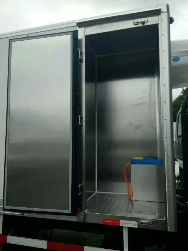 湖北程力東風(fēng)多利卡醫(yī)療廢物轉(zhuǎn)運(yùn)車: 配備東風(fēng)多利卡經(jīng)典1730駕駛室,朝柴100馬力,2噸前橋,3.5噸后橋,萬里揚(yáng)5檔變速箱,700鋼絲胎,氣剎,動轉(zhuǎn),ABS。車廂為密閉式結(jié)構(gòu),內(nèi)腔材料為不銹鋼板,防銹、防水耐腐蝕、易清洗和。車廂內(nèi)部裝有低溫殺毒,紫外線殺毒,噴霧殺毒設(shè)備,可隨時對車廂內(nèi)部進(jìn)行。廂體兩側(cè)設(shè)有桶固定裝置,保證車輛緊急啟動、停車或事故時廢棄物收集桶不會和翻轉(zhuǎn)。 湖北程力福田奧鈴醫(yī)療廢物轉(zhuǎn)運(yùn)車: