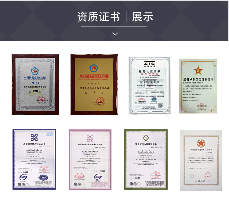 產品質量穩定,經營方式靈活,公司現已全面通過ISO9001-2008 國際質量體系認證、3C國際強制產品認證,并通過出口產品的各項認證!俺塘ν碑a品有680多個品種上國家公告目錄,其中有不少的車型如灑水車、垃圾車、吸污車、吸糞車等環衛系列車型享受國家免車輛購置稅優惠條件。