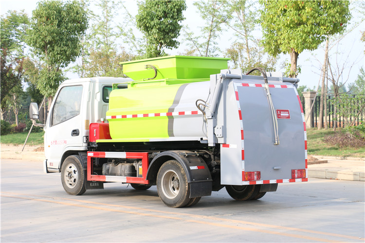 凱馬餐廚垃圾車又稱廚余垃圾車或者泔水車,是鳙魚收集和運輸生活垃圾,食品垃圾(泔水)及城市淤泥的車輛,具有自裝,自卸,固液分離,運輸垃圾車自動化程度高,密封性好,操作簡單,無污水泄露和異味的散發等特點 國六凱馬藍牌餐廚垃圾車配置:常用整車型號:CLW5040TCAKL6|軸距2800,或者3300濰柴130馬力,容積3立方。固液分離、全推板、加熱裝置可選,實車公告,環保已下發,上戶無憂 罐體容積3方,采用4mm碳鋼制作,方形罐體,罐體與后蓋上部采用鉸鏈連接,后蓋可利用液壓油缸打開卸料;罐體右側前部裝有掛桶提升機構裝卸桶裝垃圾,罐體底部安裝液壓油缸實現罐體舉升自卸。后蓋采用液壓開啟、鎖緊。操作方式為室外手動液壓操作。凱馬3方藍牌餐廚垃圾車底盤配置:濰柴發動機,六檔變速箱,2800軸距,1046后橋,6.50R16鋼絲胎,新款五十鈴1680白色單排可翻轉駕駛室 我公司生產的凱馬餐廚垃圾車優勢: 其外觀造型美觀大方。垃圾箱橫向截面為圓柱框架、縱向截面為梯形框架,兩側及頂面均為圓弧造型,美觀大方,裝載能力強。且能實現箱內餐廚垃圾油水的初步分離和垃圾減容,并配備有大容量污水箱,垃圾箱與后門總成之間密封性好。垃圾箱與后門總成之間采用特制型橡膠條密封,密封性好,了二次污染。可靠性與安全性。采用電、液聯合控制,并設置了安全保護開關,保證了各機構動作準確、可靠。發動機功率輸出自動控制。發動機功率輸出實現全自動控制,非作業時,發動機怠速狀態,作業時,發動機自動加速,滿足作業功率的要求。避免了功率損耗和系統發熱,耗油降低,經濟性好。 機動性強。作業罐體和作業平臺利用底盤承載,任何需要對泔水進行處理的地方,只需一個司機一個作業工人就能隨叫隨到。其機動作業能力好。 湖北程力國六凱馬3方藍牌餐廚垃圾車程力威牌CLW5040TCAKL6型餐廚垃圾車CLW5040TCAK6型餐廚垃圾車圖片價格: