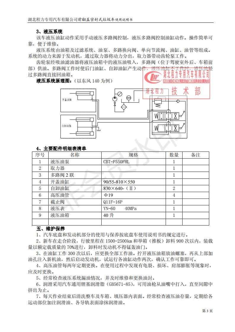 湖北程力密封自卸垃圾車使用維護說明書(程力自卸垃圾車如何使用
