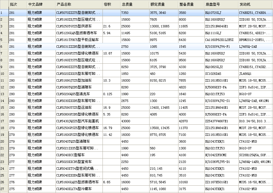 2016年是實現“十三五”規劃開局之年,又適逢環保部實施國五排放升級,為適應市場需要,程力公司在282批新上公告56個,283批又跟進了56個公告,2批公告總量達到112個,其中國五車型102個,新能源車型9個。車型覆蓋綠化噴灑車、壓縮式垃圾車、高空作業車、吸糞車、車廂可卸式垃圾車、自裝卸式垃圾車、掃路車、吸污車、壓縮式對接垃圾車、清洗吸污車、洗掃車、清洗車、運油車、鋁合金運油車、腐蝕性物品罐式運輸車、鮮奶運輸車、粉粒物料運輸車、供液車、冷藏車、散裝飼料運輸車、清障車、舞臺車、售貨車、同步碎石封層車、平板運輸車、純電動車輛等,可謂是新品大盤點。以上車型中,不僅有傳統車型,也不泛為適應市場新形勢而開發的智能型車。