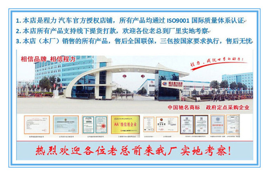 ![]() ![]() ![]() ![]() ![]() 1.底盤配置:采用大運新款單排(有排半)駕駛室,配置中德合資昆明云內(nèi)動力股份有限公司D25TCIE1國五142馬力,駕駛室原裝方向助力,6檔變速,汽剎,有燃油、環(huán)保公告,軸距3300mm,7.50R16輪胎,總質(zhì)量4375kg,額定質(zhì)量1055/1120kg,整備質(zhì)量3125kg。 2.上裝配置:廂體內(nèi)部有效尺寸:單排長4.05米(排半駕駛室的3.75)×寬2.05米×高2.2米,內(nèi)外玻璃鋼,隨客戶選擇內(nèi)置槽鋼焊接骨架或者玻璃纖維超輕高強度骨架,填充8cm厚聚氨酯保溫,不銹鋼包角,不銹鋼門框,不銹鋼門鎖件,花紋鋁底板,配后雙開門,該車可選裝單側開門,-5度或者-18度制冷機組可以選擇。選裝美國進口開利或者冷王制冷機組。 3.其他說明:貨箱頂部封閉,不可開啟。選裝排半駕駛室;選裝前面罩,徽標樣式及安裝位置;選裝導流罩;可選裝瓦楞板式,可不裝側開門;選裝可升降液壓尾板;可選裝功率相當?shù)钠渌吞柕闹评錂C組;選裝后視鏡;選裝后防護裝置。防護裝置材料為:Q235,螺栓連接,后防護裝置離地高度為450mm,截面高度和厚度為130mm×30mm。僅選用該底盤WP3Q130E50、D25TCIE1、D25TCIE3發(fā)動機,2800mm、3300mm軸距。駕駛室型式/整車長度/軸距/貨箱長度對應關系(mm):排半/5490/2800/3200,排半/5990/3300/3750;單排/5490/2800/3500,單排/5990/3300/4050。 4.其他說明:車廂頂部封閉不可開啟,可以安裝導軌,肉鉤,通風槽等內(nèi)部設施。 5.咨詢熱線:電話:18672222488王經(jīng)理 微信號:18672222488 商務QQ:18672222488 備注: 1.該車型可以加裝“制冷+加熱”雙溫機組,安裝溫濕度記錄儀,安裝通風槽、可安裝導軌肉鉤等。根據(jù)客戶要求改裝成適合運輸藥品(醫(yī)藥疫苗運輸車),蔬菜、水果、鮮肉類,凍肉類、海鮮類、雞苗類等各種用途的冷藏車、保溫車、冷凍車等。 2.配置用途不同,價格有所變化(現(xiàn)報價為標配價格) 廂體結構:采用聚酯濕法制板工藝和玻璃纖維加強不銹鋼立柱框架結構,使用國際上最為先 進的第五代全封閉聚氨酯板塊粘接法。 廂板材質(zhì):內(nèi)外壁板選用國內(nèi)優(yōu)質(zhì)的機制2.2mm玻璃鋼;中間保溫材料選用厚進口聚氨酯; 廂體厚度80mm 門厚度80mm;底板上面整體鋁花紋板,下面彩鋼板,中間進口聚氨酯; 配件:廂體周邊2.5mm鋁合金包邊,不銹鋼包角,不銹鋼門鎖,防碰膠皮4塊,不銹鋼門框, 不銹鋼合頁,箱內(nèi)節(jié)能照明燈。 制冷機組:冷藏機組知名的國產(chǎn)品牌凱利,漢雪或華泰頂置式機組,廂體溫度0上5度至0下18度(可選配進口機組韓國韓亞,美國開利冷王等)。 駕駛室可視---車廂溫度監(jiān)視儀、溫度控制器以及溫度打印機等。(根據(jù)客戶需求可選裝) 整車出具:正規(guī)底盤合格證,正規(guī)整車合格證,正規(guī)車輛購置稅發(fā)票,全國統(tǒng)一機動車,隨車工具,車輛質(zhì)保手冊,車輛使用說明書,全國服務站名錄等。讓您上戶無憂,方便快捷! 冷藏車廂體制作技術: 1、分片拼裝的“三明治”板粘接式,目前國內(nèi)較大的冷藏車生產(chǎn)企業(yè)都采用這種技術,利用這種技術生產(chǎn)的冷藏車隔熱性能較高。 2、分片拼裝的注入發(fā)泡式。 3、整體骨架注入發(fā)泡式。 4、真空吸附式粘貼冷藏機組分類:冷藏機組分為非獨立制冷機組和獨立制冷機組。國產(chǎn)機組與進口機組等。一般車型都采用外置式冷機,少數(shù)微型冷藏車采用內(nèi)置式冷機。對于溫度要求較低的冷藏車,可采取廂體內(nèi)置冷板(功能相當于蒸發(fā)器) 要想廂體的保溫效果好,自然是隔熱層材料的選擇了。 售后及維護說明: (2)建立定期回訪制度。每年夏季、冬季公司售后服務人員開展“夏季送綠蔭”和“冬季送溫暖”活動,保證售出車輛的維修的保養(yǎng)。 (3)冷藏/保溫廂體保修一年(行駛里程不超過25000公里)。在保修期內(nèi),由于材料、制造、裝配方面所造成的損壞,由本公司負責更換與修理。 (4)保修范圍內(nèi)不包括正常磨損,對于不按照說明書使用以及交通事故,人為破壞,本公司不予保修。到本公司修理,由用戶承擔修理費用。 (5)開通24小時服務熱線,對用戶提出的維修要求實行4小時內(nèi)答復,24小時到達現(xiàn)場服務。(邊遠地區(qū)72小時到達現(xiàn)場服務) (6)超過保修期的廂體,需更換配件或維修,我公司均能滿足配件供應和及時的服務,無償派技術人員進行維修,只收取原材料成本費。 備注:產(chǎn)品信息、圖片、參數(shù)等,僅供用戶選購參考,對冷藏車有特殊要求的請?zhí)崆案嬷?/span> 我們的授權和榮譽![]() 我們的冷藏車給您的貨物一個清涼的世界 ![]() 我們的細節(jié)展示 ![]() ![]() 訂購程力專汽,只需輕松5步確定需求銷售經(jīng)理隨后會對您進行電話訪問咨詢,了解您的購車需求,并根據(jù)您的實際情況推薦適合您的方案和產(chǎn)品,并發(fā)電子版產(chǎn)品資料配置,方便您進行參考和定奪。 簽訂合同一旦您確定購車方案,雙方會簽訂訂購合同。 廠家生產(chǎn)交付定金后,我們數(shù)萬名員工將開始為您制造高品質(zhì)的產(chǎn)品。 滿意交付您可以選擇到廠家自提汽車,或者選擇送車服務。如果您選擇廠家自提,您可以享受我們星級的售中服務。 |