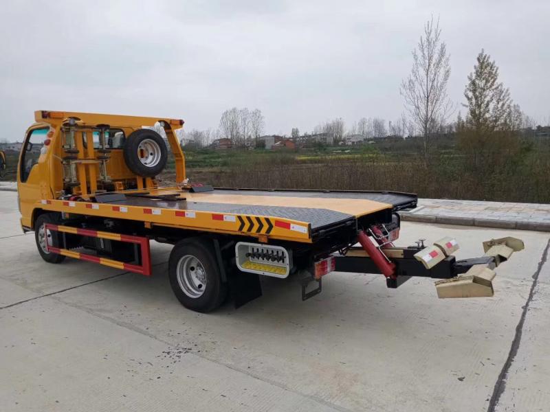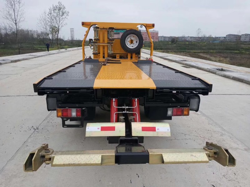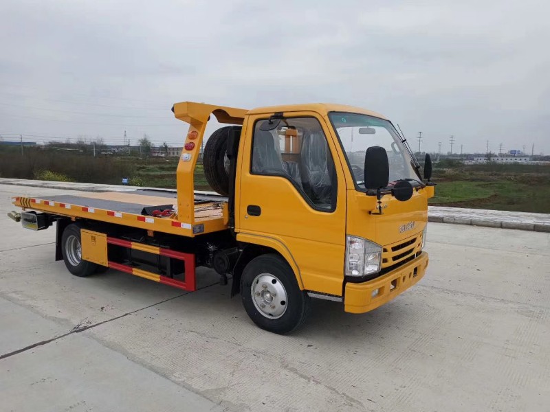 國六五十鈴藍牌一拖二清障車底盤配置:100P駕駛室,3360mm軸距,五十鈴120馬力發動機,五十鈴MSB五檔變速器,空調,方向助力,多功能液晶儀表盤,ABS,700R16輪胎,單排,前橋2噸,后橋4噸,駕駛室可翻,油剎或氣剎。